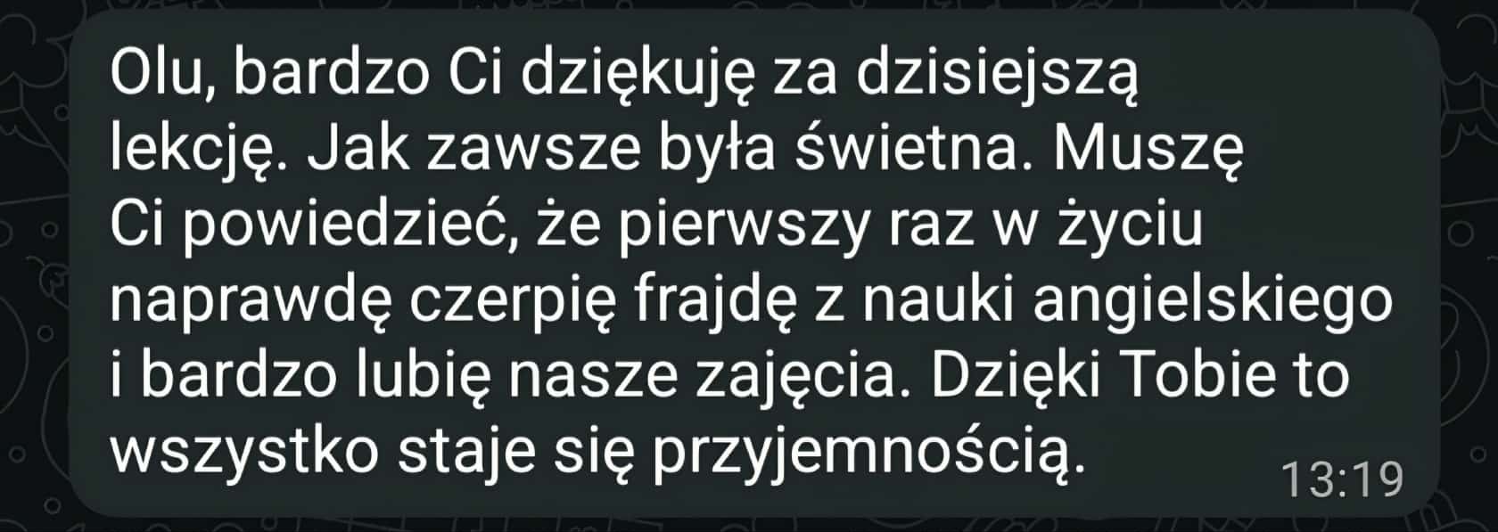 Moje lekcje zawierają elementy mentoringu językowego, bo wierzę, że nauczanie to kreatywny proces, w którym chodzi o zaangażowanie ucznia i rozwijanie jego potencjału oraz wsparcie w aspektach wykraczających poza same zagadnienia językowe.